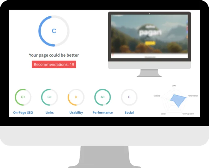 Your report will reveal the 30+ critical ranking factors holding your site back and provide a letter grade showing exactly where you stand. Go from a “C” rated site to an “A” rating and unlock your website’s hidden potential!