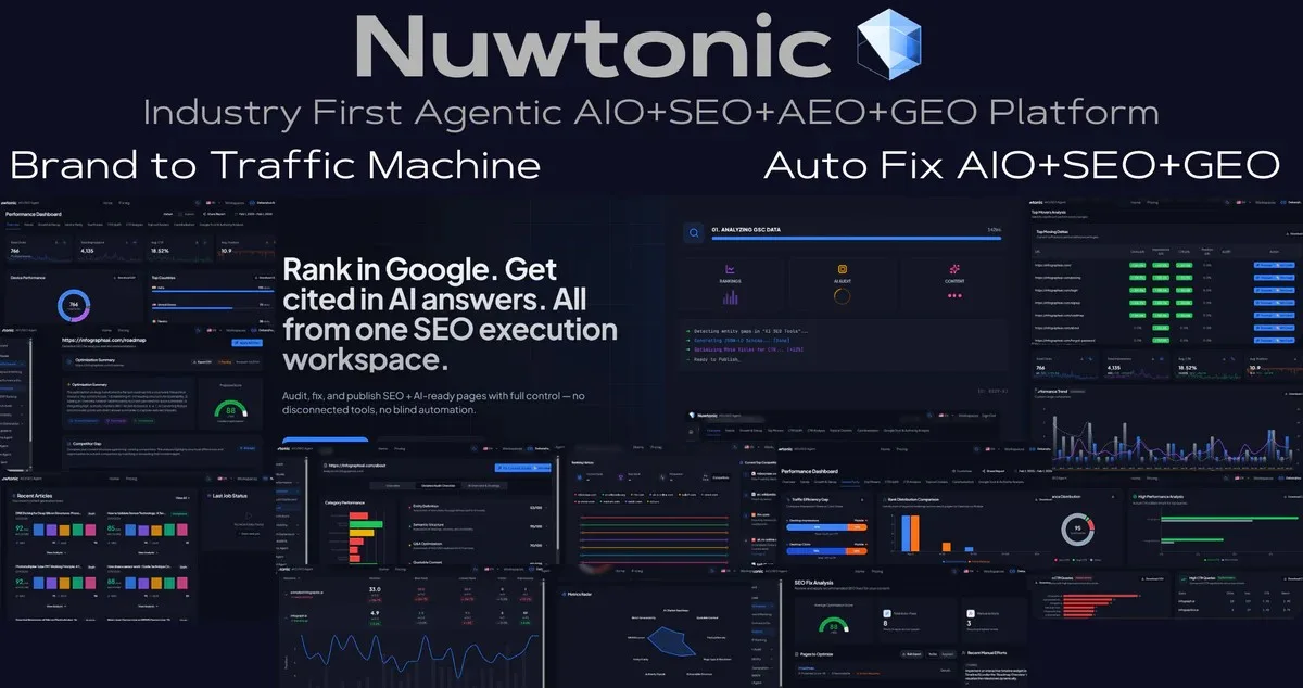 Nuwtonic is an AI-powered SEO execution platform solving the analysis-to-action gap destroying SEO team productivity where most platforms show dashboards, reports, and audit findings telling you what’s broken then abandon you to manually implement fixes across scattered tools, spreadsheets, and CMS platforms that never talk to each other. Most SEO teams and agencies spend 40+ hours per month analyzing search console data, running audits, creating optimization plans, and manually implementing fixes page by page because their tools stop at “here’s what’s wrong” instead of “we fixed it, approve to publish.” Nuwtonic fixes this by combining three specialized AI agents—Performance Agent analyzing search console data to identify high-impact SEO and AI visibility gaps then generating detailed fixes based on competitor and SERP analysis, AI Search Audit Agent auditing pages for citation readiness in AI search platforms like ChatGPT, Perplexity, and Google AI while identifying content gaps and schema errors preventing visibility, and Content Agent building topical authority maps then generating SERP-aware content briefs and entity-rich articles optimized for both traditional rankings and AI citations—all with review-first execution where every change requires your approval before going live instead of blind automation making unwanted modifications. SEO agencies managing 20+ client sites who can’t afford to manually implement thousands of optimizations, in-house teams optimizing catalogs with hundreds of product pages, and solopreneurs building organic traffic without technical expertise use Nuwtonic to replace disconnected tool stacks, execute bulk optimizations while maintaining page-level control, and rank in both traditional search results and AI-generated answers simultaneously.
